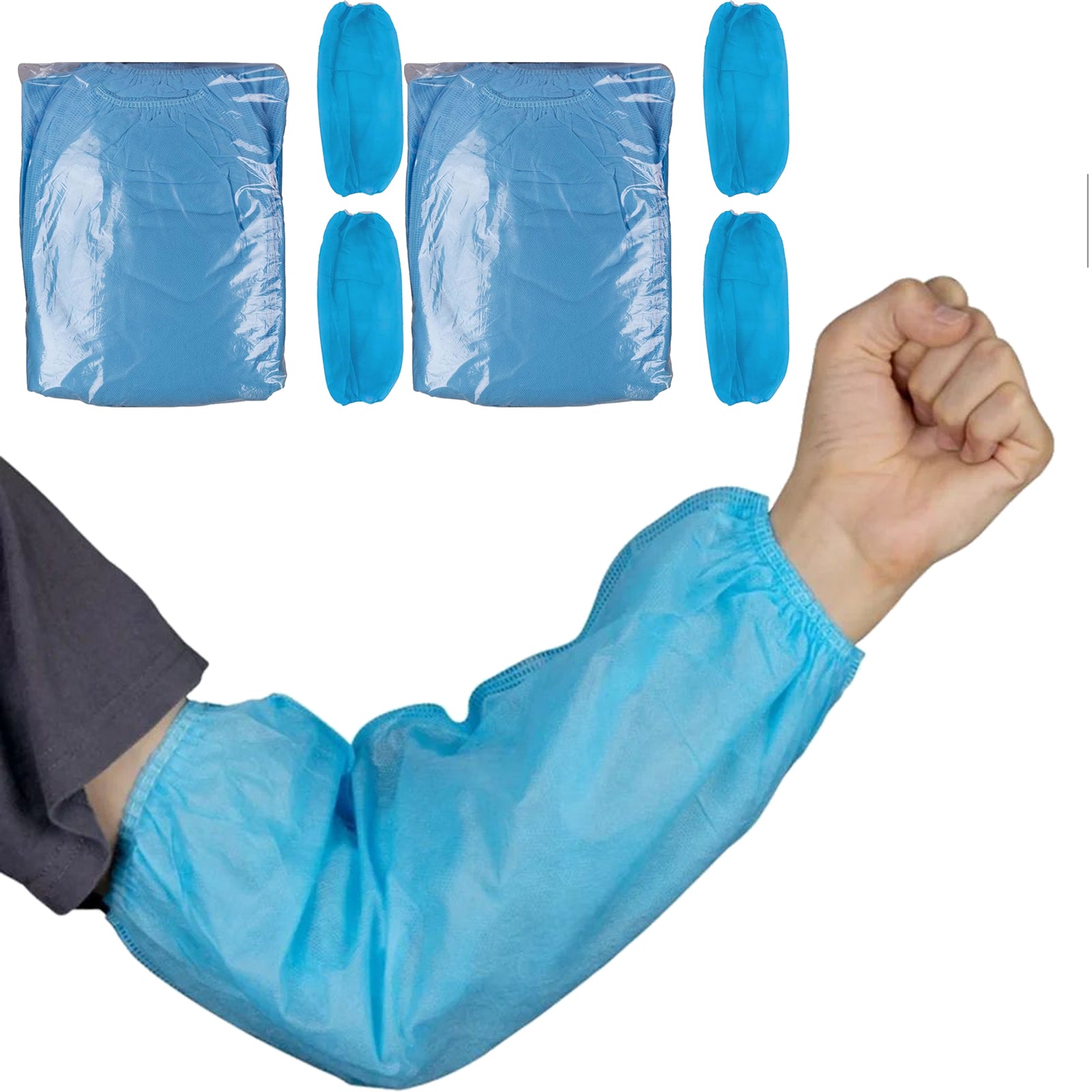 200pcs Safetyware Non-Woven Fabric Disposable Protective Arm Sleeves Protector Breathable Cover Blue for Hospital Laboratory Kitchen Saloon