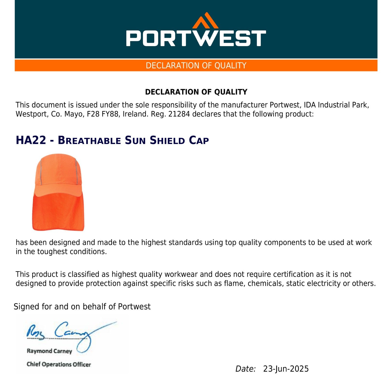 2 Pack Portwest Breathable Sun Shield Cap Reflective Safety Work Hat Neck Protection Shade Visor Navy Orange Bulk