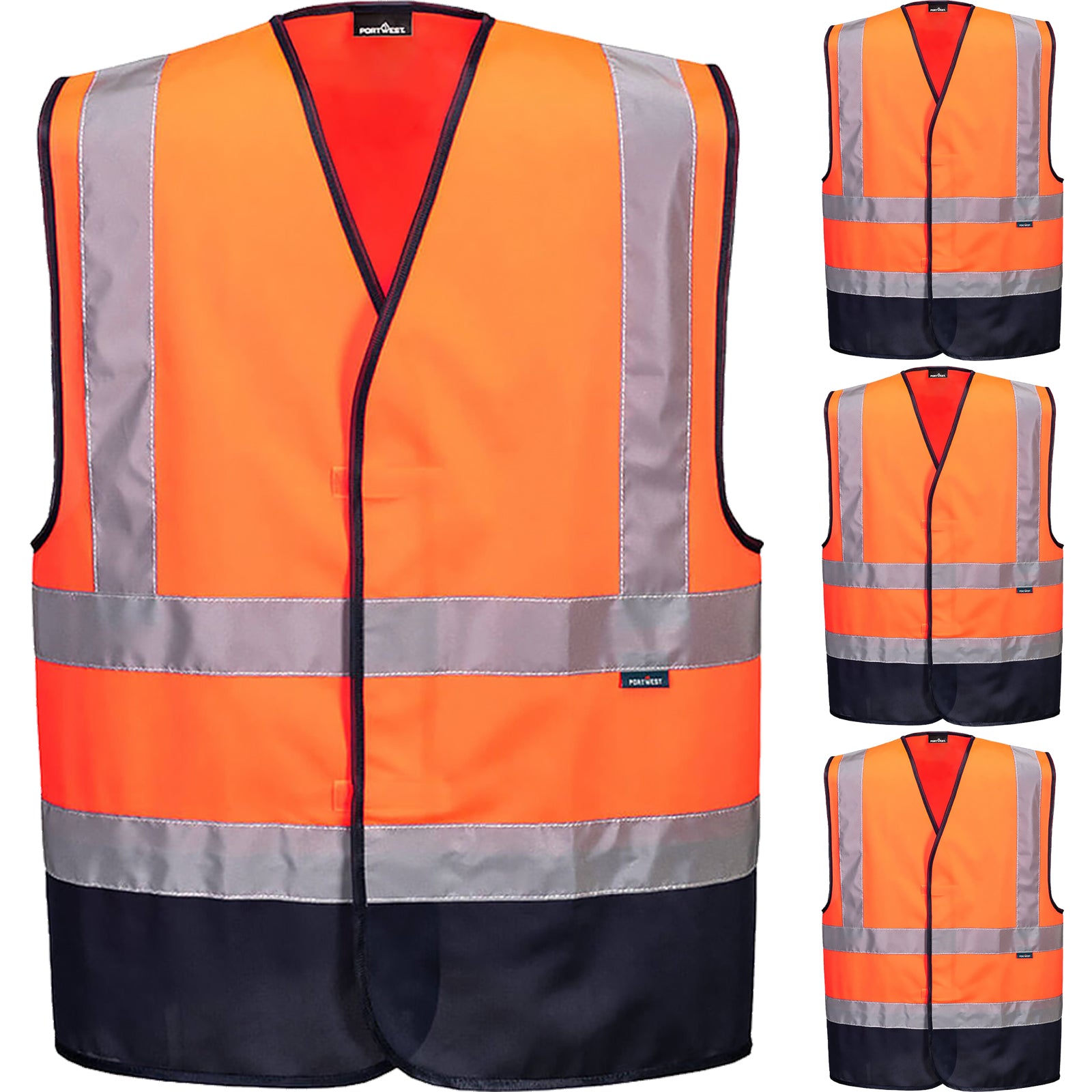 4 Pack Portwest Hi Vis Vest Safety Reflective Tape Workwear Bulk Contrast Orange High Visibility Class D/N Day & Night