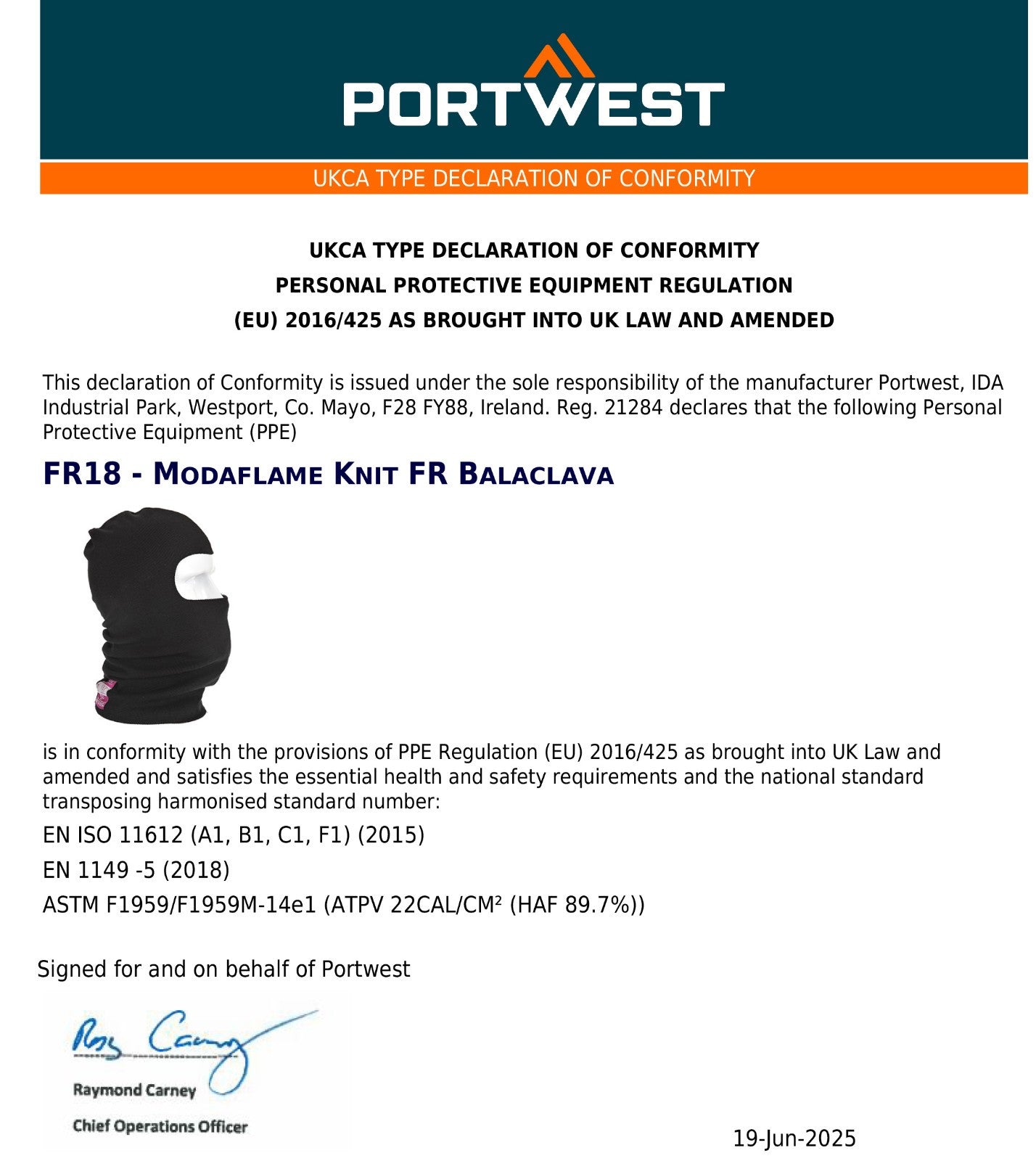 7x Portwest Modaflame Knit Anti-Static FR Fire Flame Resistant Balaclava Full Face Mask Head Protection FR18 Beanie Warm Hood Black Bulk PPE