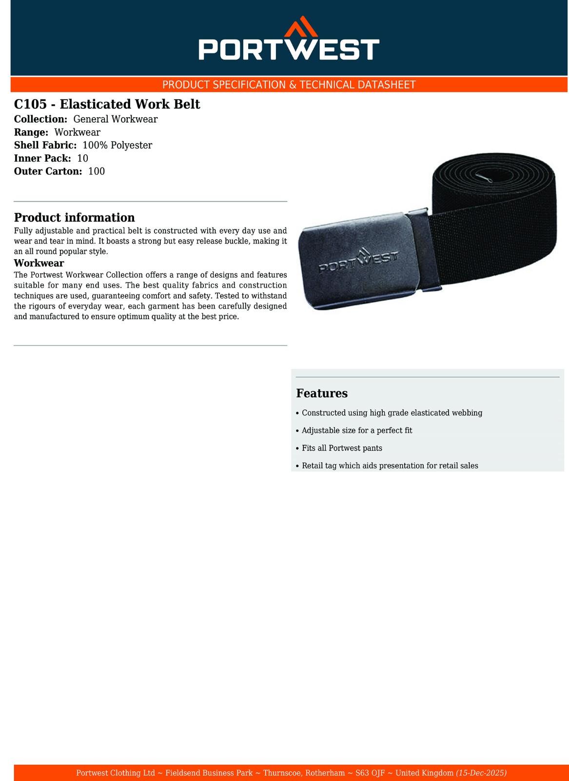 4x Portwest Elastic Adjustable Webbing Stretch Canvas Tactical Work Belt Bulk C105