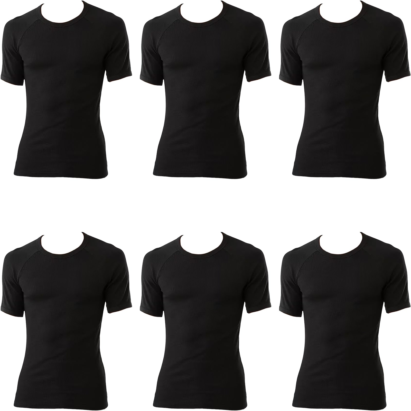 6 Pack Bonds Aircel Thermal Short Sleeve Tee Mens T-Shirt Black Raglan Waffle Knit Bulk Undergarment MVNK