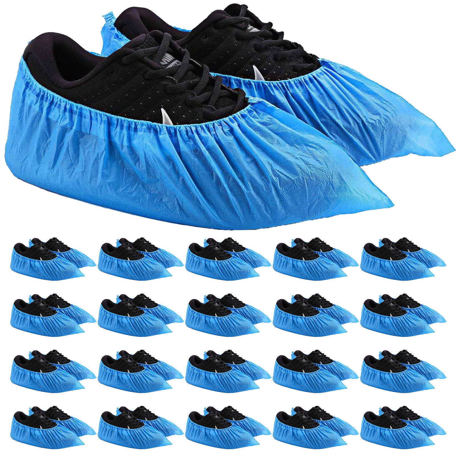 20 Pack Safetyware CPE Anti-Skid Waterproof Disposable Boot Shoe Covers Protector Overshoes Bulk Non Slip Rain Medical Laboratory Cleanroom SC04-BLU