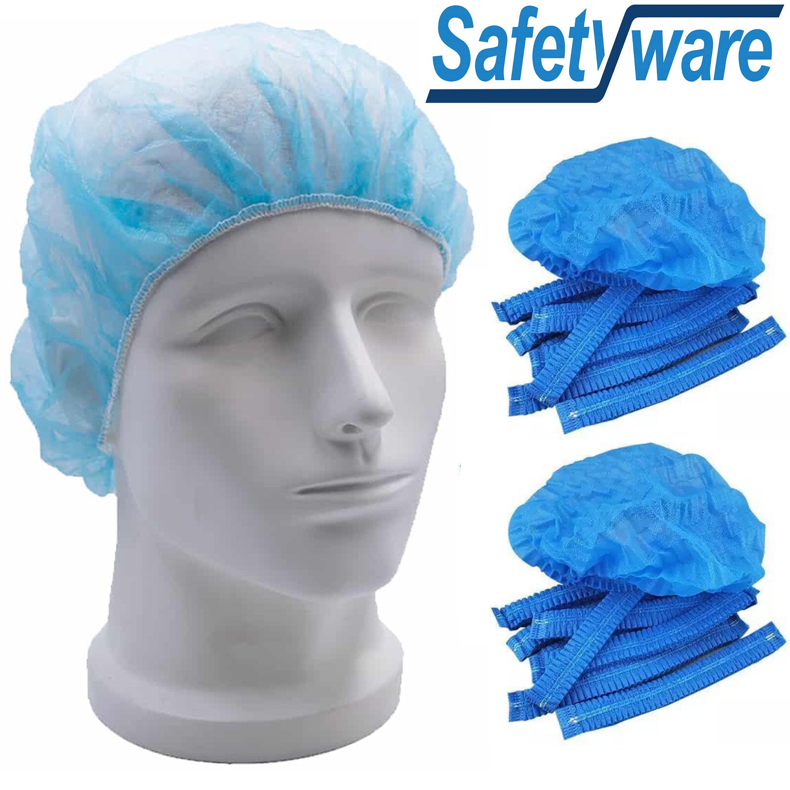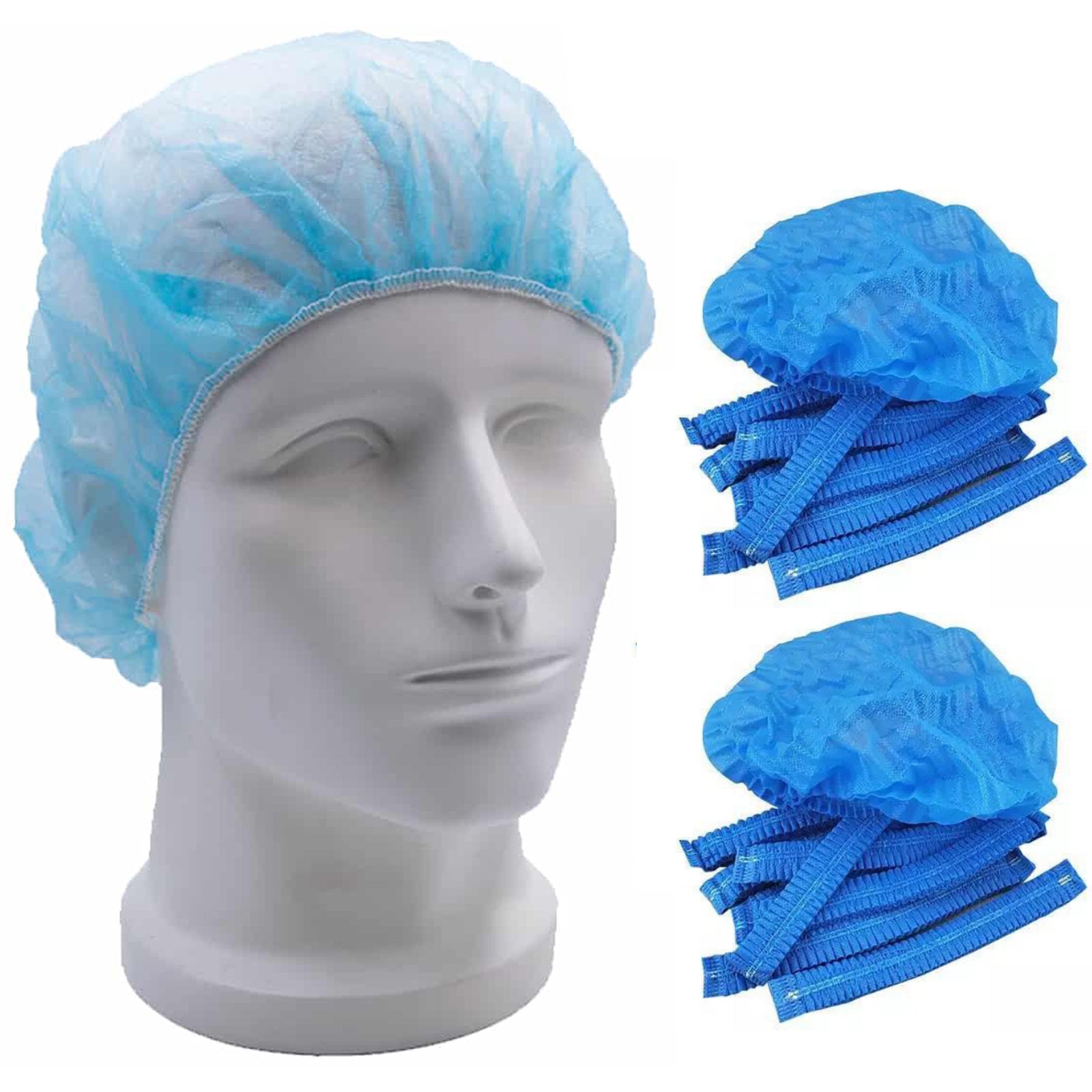 20pcs Safetyware Non-Woven Disposable Bouffant Mob Cap Hair Net Head Cover Dustproof Elastic Bulk for Hospital Food Kitchen Cleaning Laboratory Blue