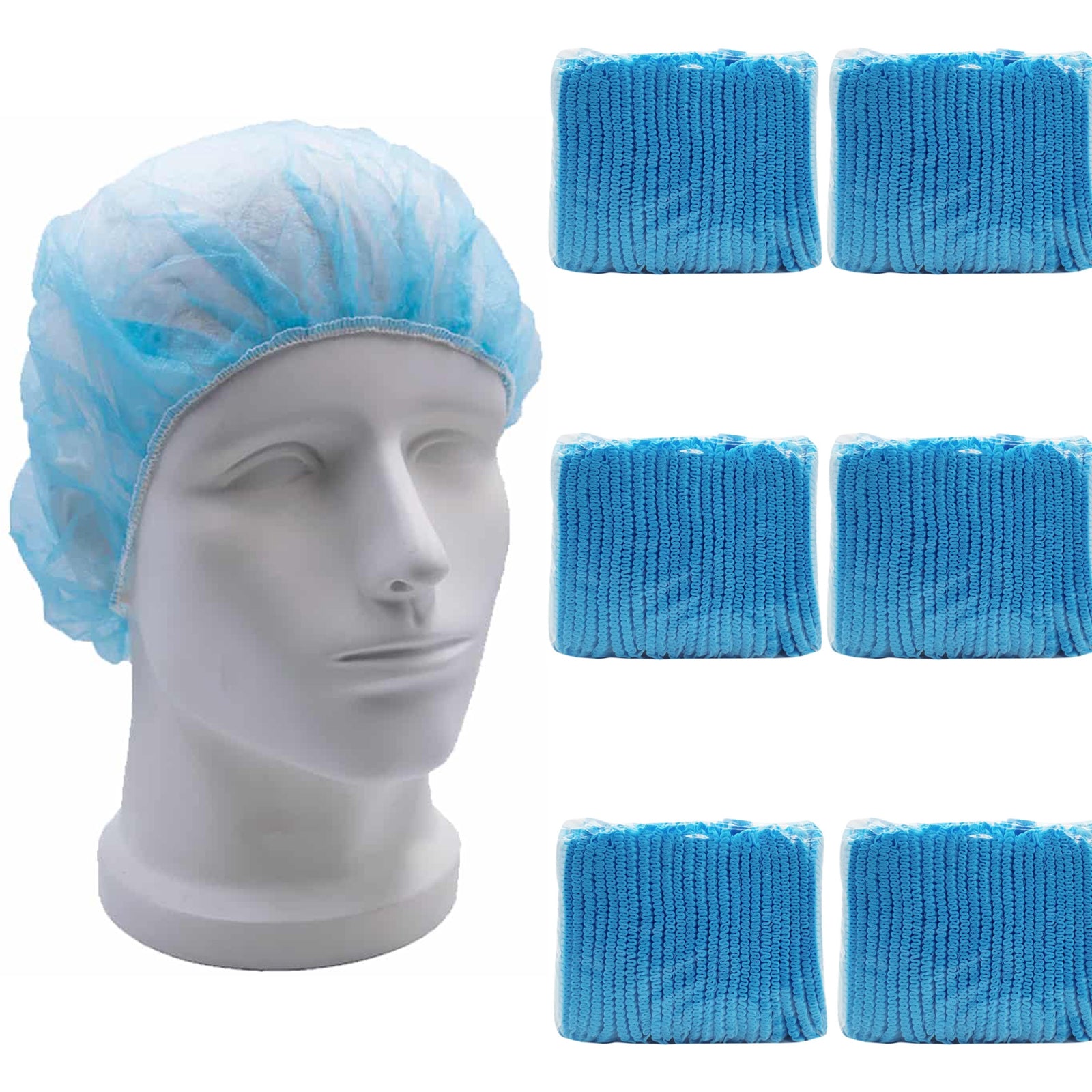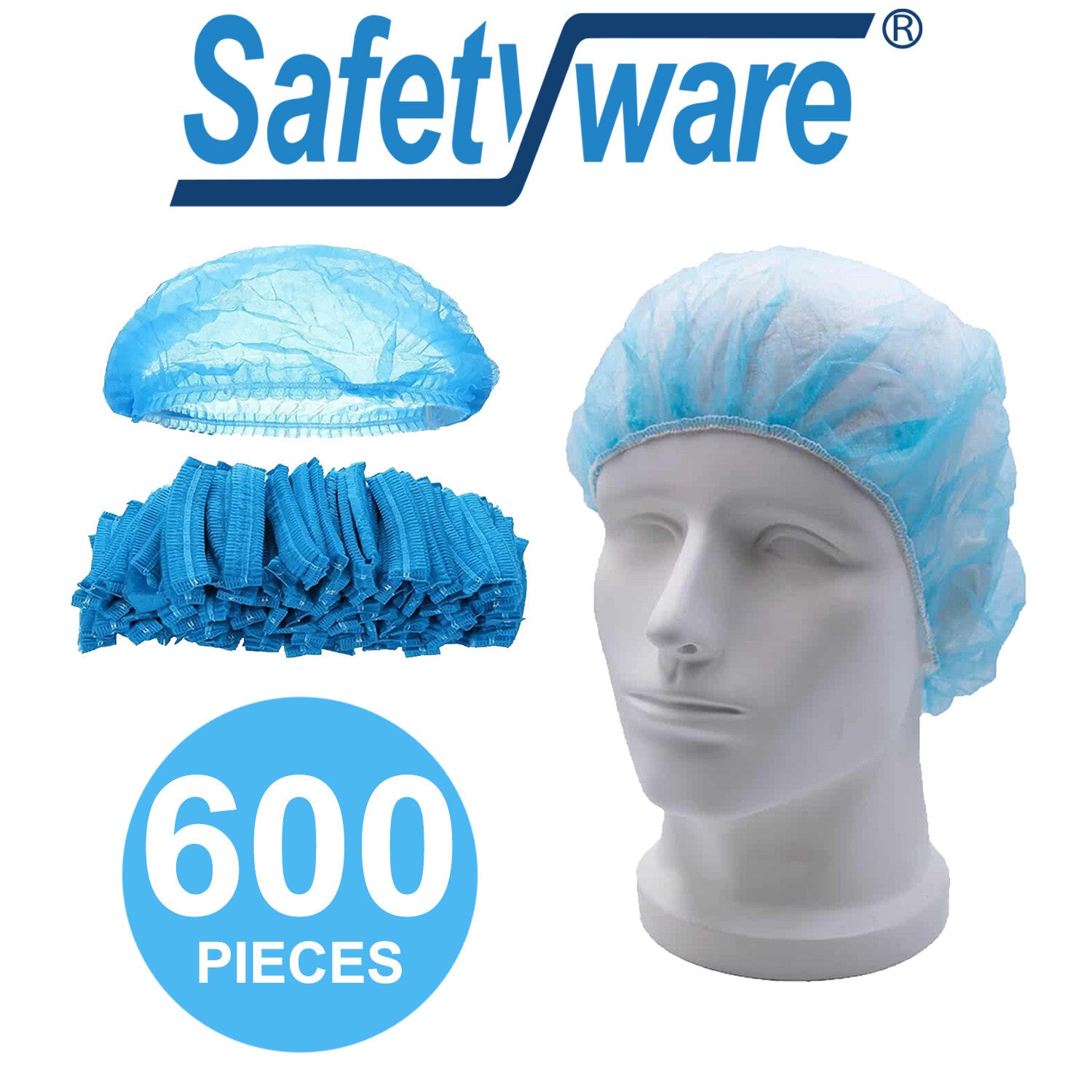 600pcs Safetyware Non-Woven Disposable Bouffant Mob Cap Hair Net Head Cover Dustproof Elastic Bulk for Hospital Food Kitchen Cleaning Laboratory Blue