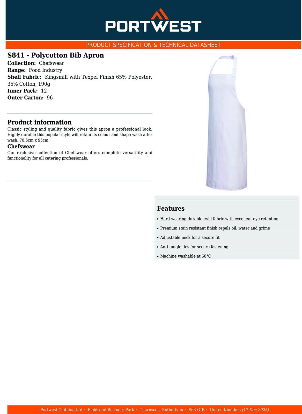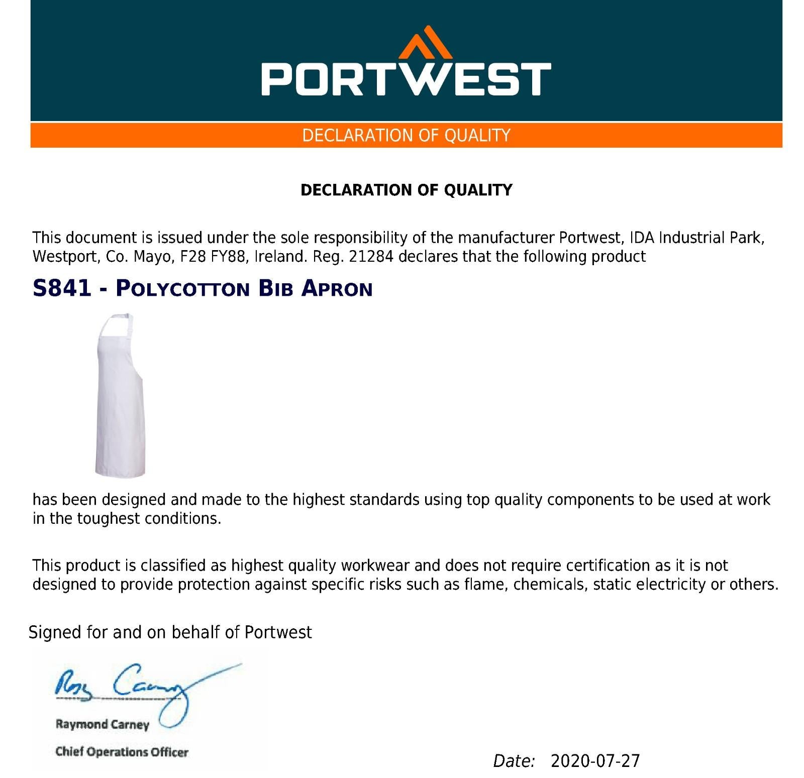 3x Portwest Adjustable Plain kitchen Butcher BBQ Cooking Chef Bib Apron White Bulk S841