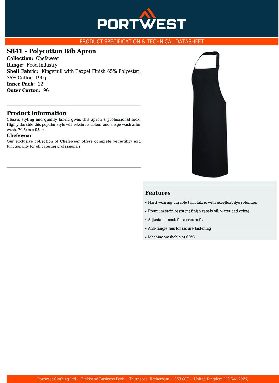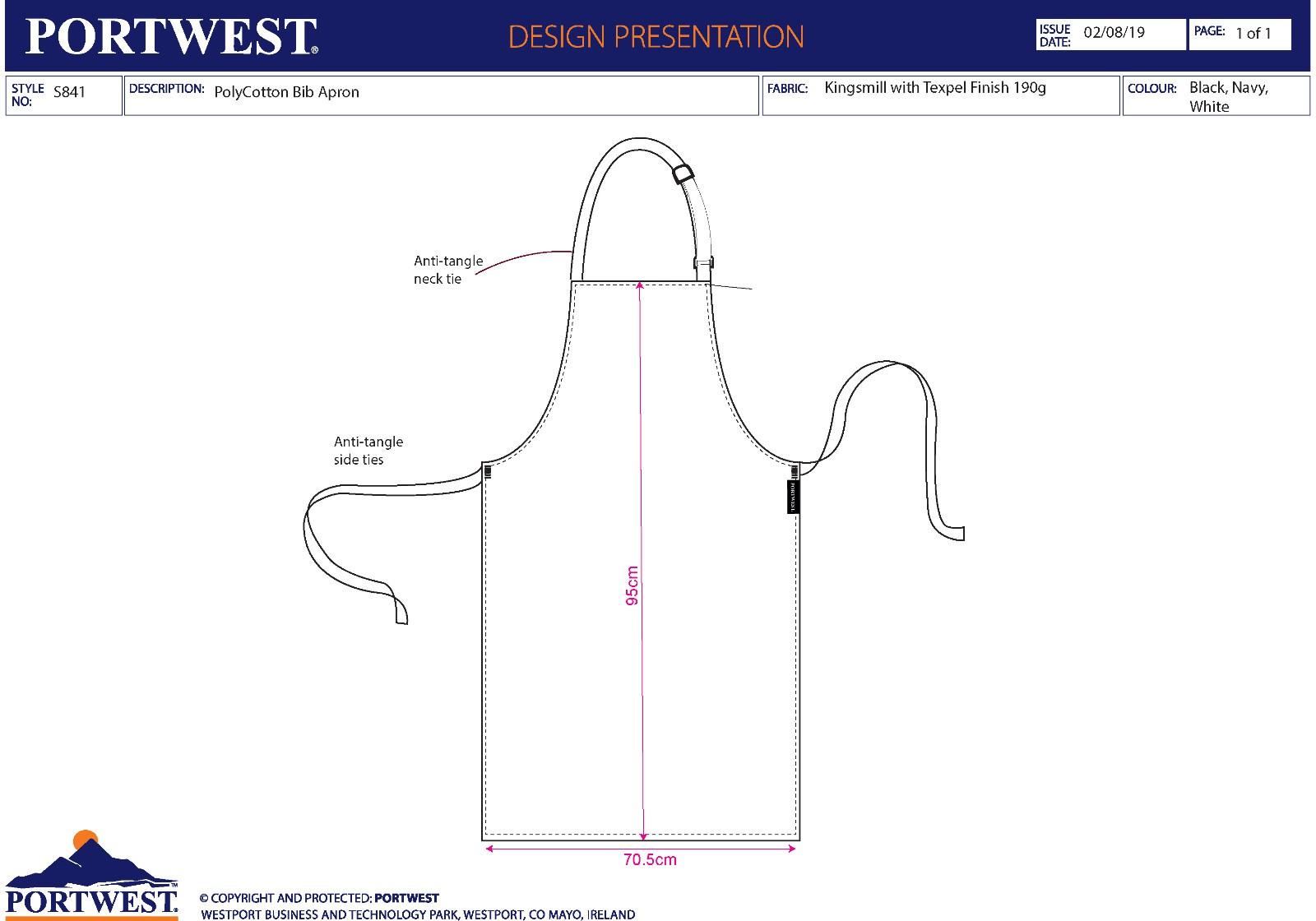 3x Portwest Adjustable Plain kitchen Butcher BBQ Cooking Chef Bib Apron Black Bulk S841
