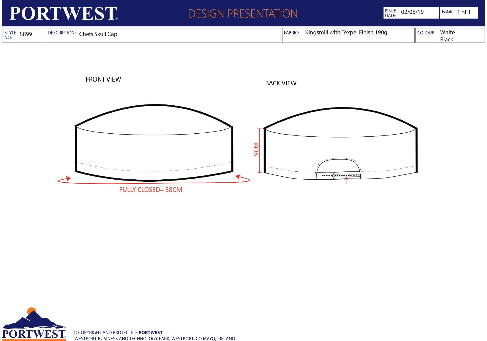 The S899 Skull Cap gives a stylish addition to the Chefswear range. Hook and loop adjustment gives a comfortable fit and the Kingsmill fabric guarantees maximum performance.