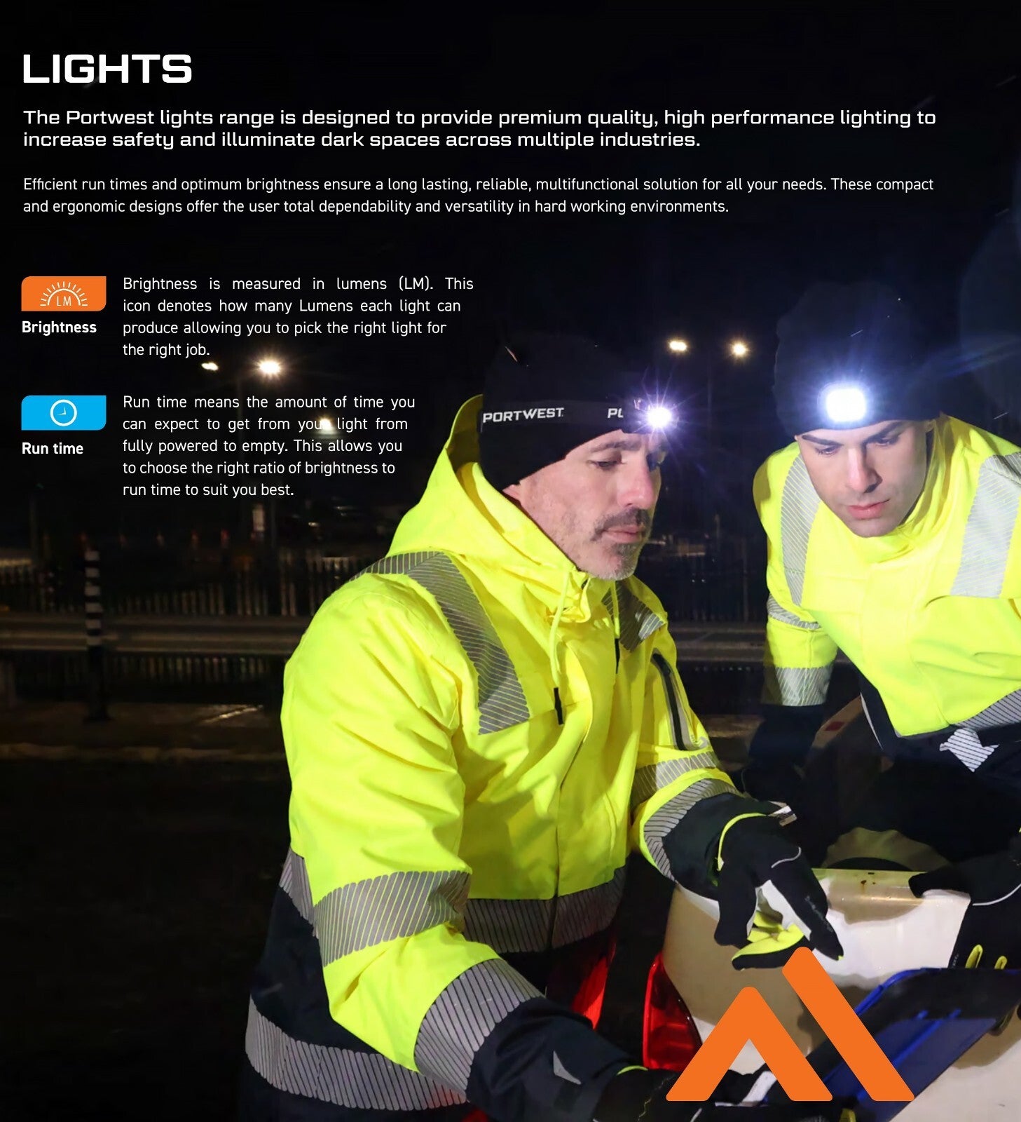 Portwest PA50 LED Head Light Torch Battery Headlight Headlamp Adjustable Tilt Control